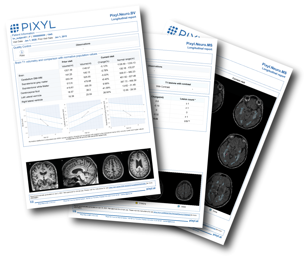 Pixyl.Neuro est une solution basée sur l’intelligence artificielle, permettant une analyse automatique des clichés d’IRM (Imagerie par Résonance Magnétique) du cerveau.